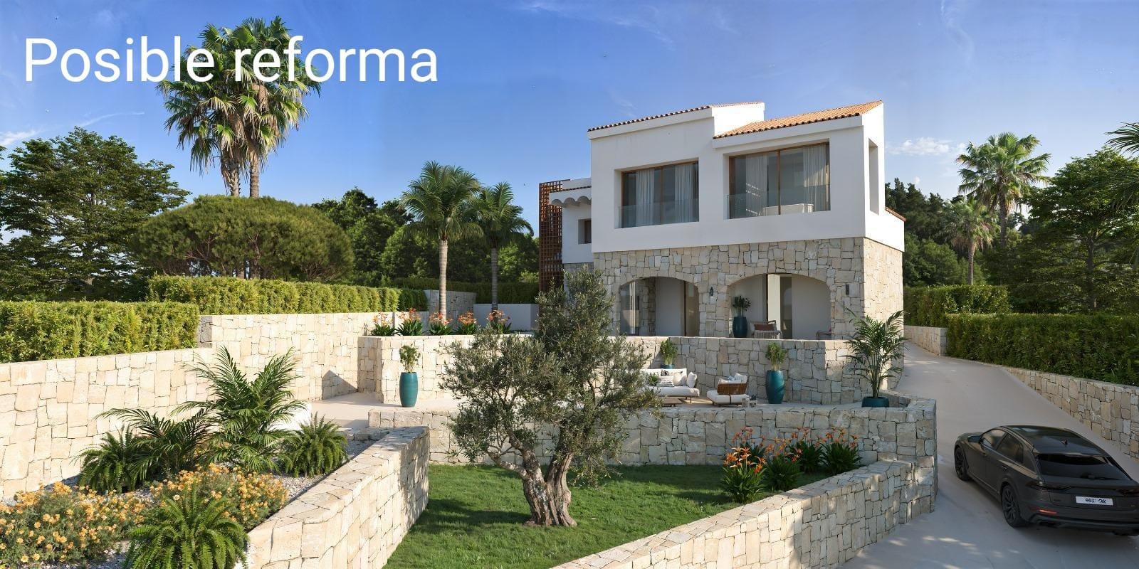 Características principalesDormitorios: 6 espaciosos dormitorios, todos con vistas o con conexión directa a zonas verdes. Algunos suites con baño propio, empezando por el dormitorio principal tipo suite, muy amplio, con vestidor y terraza privada.Baños: 3 baños completos , con acabados modernos: mármol o piedra natural, grifería de calidad, duchas grandes o incluso cabina de hidromasaje; además de uno de cortesía para invitados.Superficie de la parcela: 2.885 m², lo que permite jardines exuberantes, zonas verdes mediterráneas, árboles maduros, camino de entrada privado, espacio para piscina grande, terraza‑solárium, zona barbacoa, garaje o parking cubierto y descubiertos.Zona exterior: Amplias terrazas con vistas panorámicas al mar y/o a la naturaleza de Las Rotas; zona de piscina (posiblemente con zona chill‑out), pérgolas, zona comedor exterior, caminos de piedra, jardines paisajísticos, privacidad garantizada por vegetación.Interior: Distribución interior muy cómoda y luminosa. Salón principal con grandes ventanales, techos altos, comedor. Cocina de gran tamaño, moderna y totalmente equipada con isla central, electrodomésticos de alta gama, posiblemente zona de desayuno.Acabados y detalles: Suelos de exterior e interior en piedra o madera natural, carpintería de calidad, ventanas grandes de cristal, materiales nobles, iluminación ambiental, aire acondicionado, calefacción.Vistas y orientación: Posible orientación que aprovecha la luz mediterránea, puestas de sol espectaculares; orientación que permita sol mañanero y tarde.Privacidad y acceso: Entrada privada, camino de acceso cuidado, portón automático, garaje para varios coches. Visite esta villa tan especial y única!