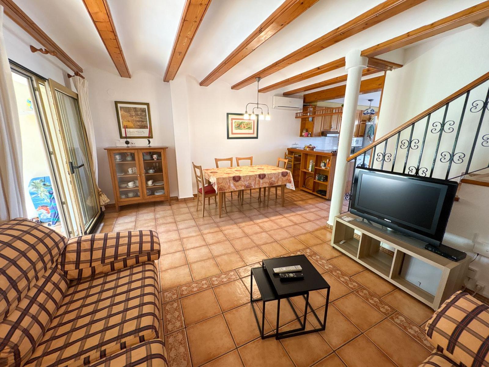 Tu Refugio Mediterráneo en DeniaImagina vivir en una hermosa casa adosada en Denia, en la zona del Montgó, donde el encantador estilo mediterráneo se mezcla con la comodidad moderna. Este acogedor hogar te ofrece un oasis de tranquilidad con tres amplios dormitorios y un baño, perfecto para disfrutar de momentos inolvidables con familia y amigos. Espacios para DisfrutarCon un diseño que prioriza la luz natural y el espacio exterior, esta casa es ideal para quienes valoran la conexión con la naturaleza. El jardín y las zonas exteriores son perfectos para relajarse, organizar barbacoas o simplemente disfrutar de los días soleados junto a la piscina comunitaria. Cocina Abierta y Comodidades ModernasLa cocina abierta es el corazón del hogar, donde podrás preparar deliciosas comidas mientras conversas con tus seres queridos. Equipado con comodidades como aire acondicionado tipo split y un acogedor chimenea, el ambiente siempre será el adecuado, ya sea para relajarte en invierno o disfrutar de las cálidas tardes de verano. Características AdicionalesGaraje: Un espacio seguro para tu vehículo.Terraza: Tanto cubierta como al aire libre, perfecta para disfrutar durante todo el año.Doble acristalamiento: Asegura un aislamiento acústico y térmico.Puerta de seguridad: Para tu tranquilidad y la de los tuyos.Parcela cerrada: Un entorno seguro y privado para disfrutar.Ubicación InigualableDenia, famosa por su mezcla de playas y montañas, te ofrece un estilo de vida vibrante. Desde el acceso a la costa hasta los impresionantes paisajes del Montgó, encontrarás actividades para todos los gustos. Ya sea que prefieras disfrutar de un día en la playa, explorar rutas de senderismo o deleitarte en la variada oferta gastronómica, aquí hay algo para cada uno. Eficiencia EnergéticaCon una calificación energética de E, esta propiedad no solo es acogedora, sino también consciente del medio ambiente, haciendo que tu hogar sea eficiente y cómodo al mismo tiempo. Esta casa en Denia es más que una propiedad, es una oportunidad para disfrutar de la vida en un entorno hermoso y lleno de posibilidades. ¡No dejes pasar la oportunidad de hacerla tuya!