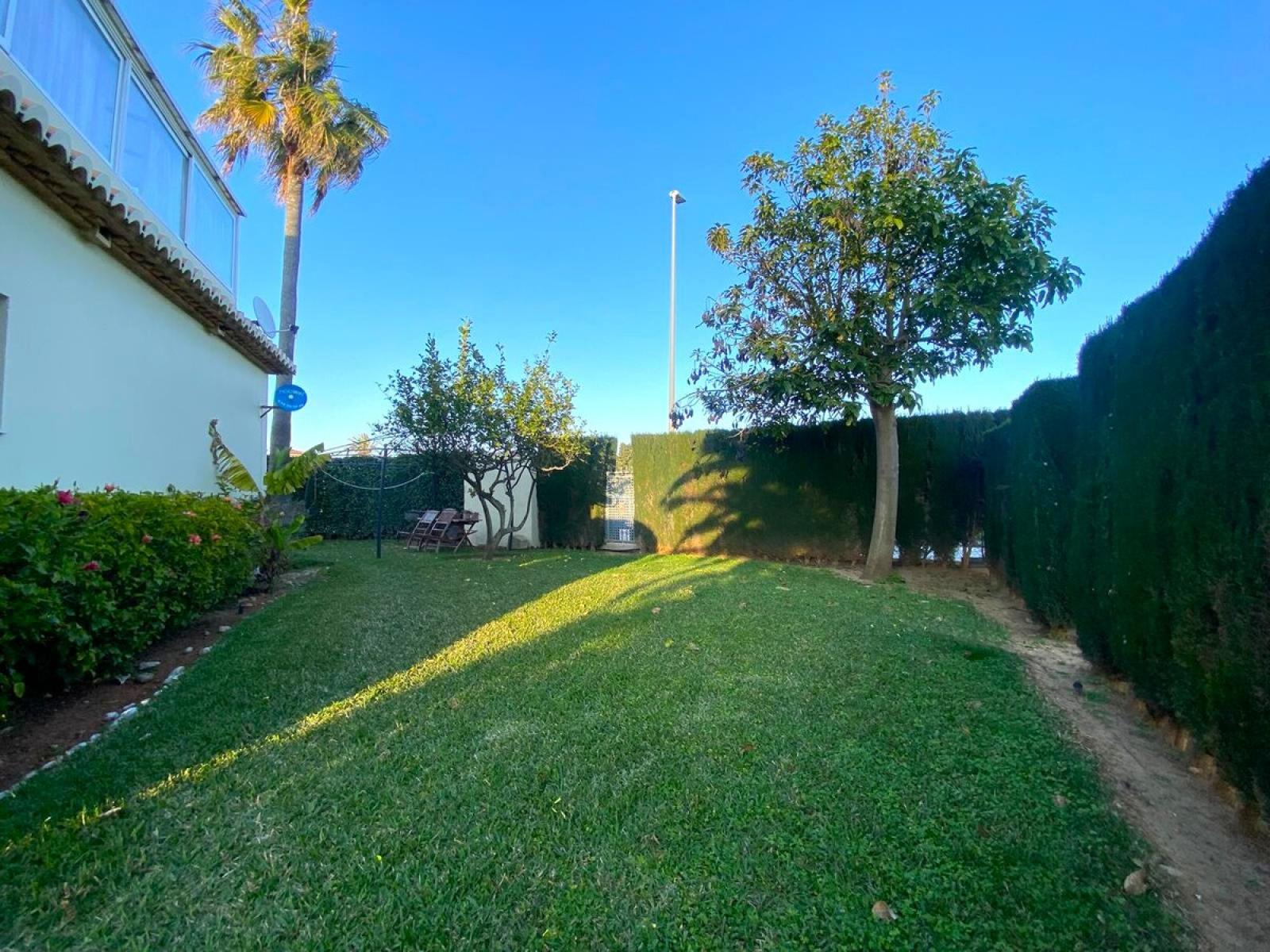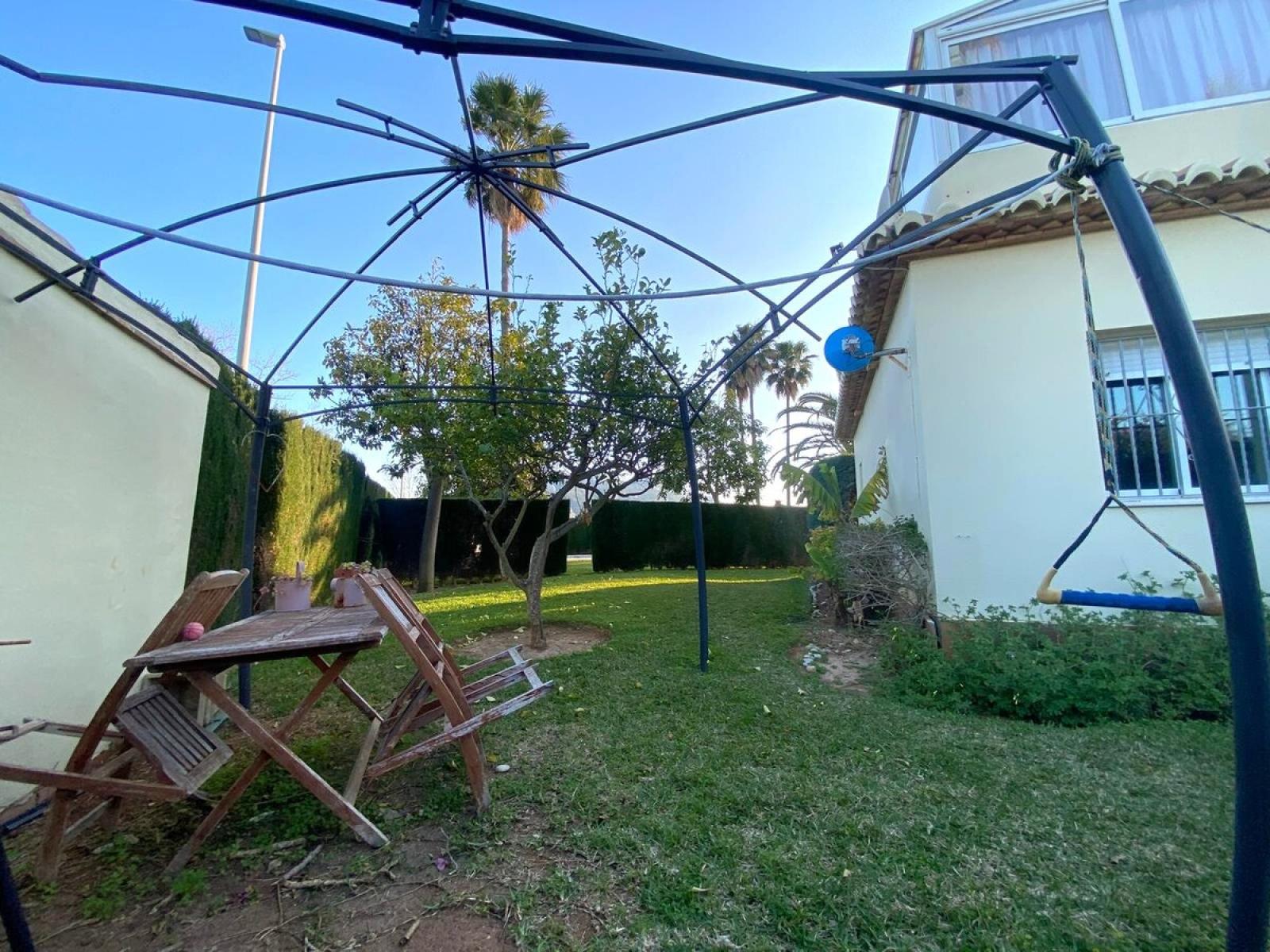 À vendre ce charmant bungalow mitoyen avec parcelle privative (260 m2) de plain-pied, situé dans une impasse. Salon-salle à manger avec cheminée, cuisine indépendante, donnant sur une terrasse partiellement couverte orientée sud-est et une autre sortie vers une terrasse arrière avec zone de barbecue, ainsi qu'un four pour faire du pain, des pizzas, etc. Il dispose de 2 chambres, 1 salle de bain et 1 débarras, ainsi qu'un espace de terrasse aménagé avec de l'aluminium et du PVC démontable, comprenant 2 autres chambres et 1 toilette extérieure. Il est équipé de la climatisation individuelle froid - chaud, de radiateurs électriques, d'une cheminée avec diffusion de chaleur par conduits, etc. Il possède des jardinières et un magnifique citronnier. Zone résidentielle à seulement 1 km de Dénia ville, à 350 m de la plage et à proximité de supermarchés, restaurants, arrêts de bus, etc...